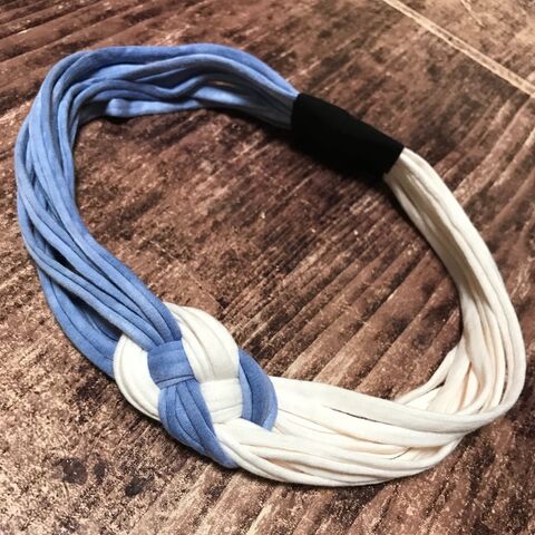 Tシャツヤーンのヘアバンド L ブルー ベージュ ハンドメイドマーケット Minne